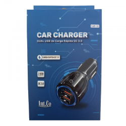 El cargador para auto Intco CAR-32 con tecnología Quick Charge 3.0 ofrece carga rápida y eficiente para tus dispositivos móviles. Cuenta con 2 puertos USB, compatible con todas las marcas como iPhone, Samsung, Xiaomi y Motorola. Funciona con entrada de 220V y salida de 5V. Compacto y en color negro, es ideal para viajes y uso diario en el auto.