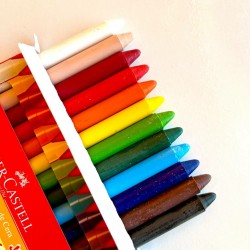 ¡Descubrí la diversión con los crayones de cera Faber Castell! Este pack trae 12 colores surtidos, lavables y seguros para niños desde los 3 años. Su punta resistente permite dibujar sin parar sobre papel, ideal para despertar la creatividad de los más chicos.