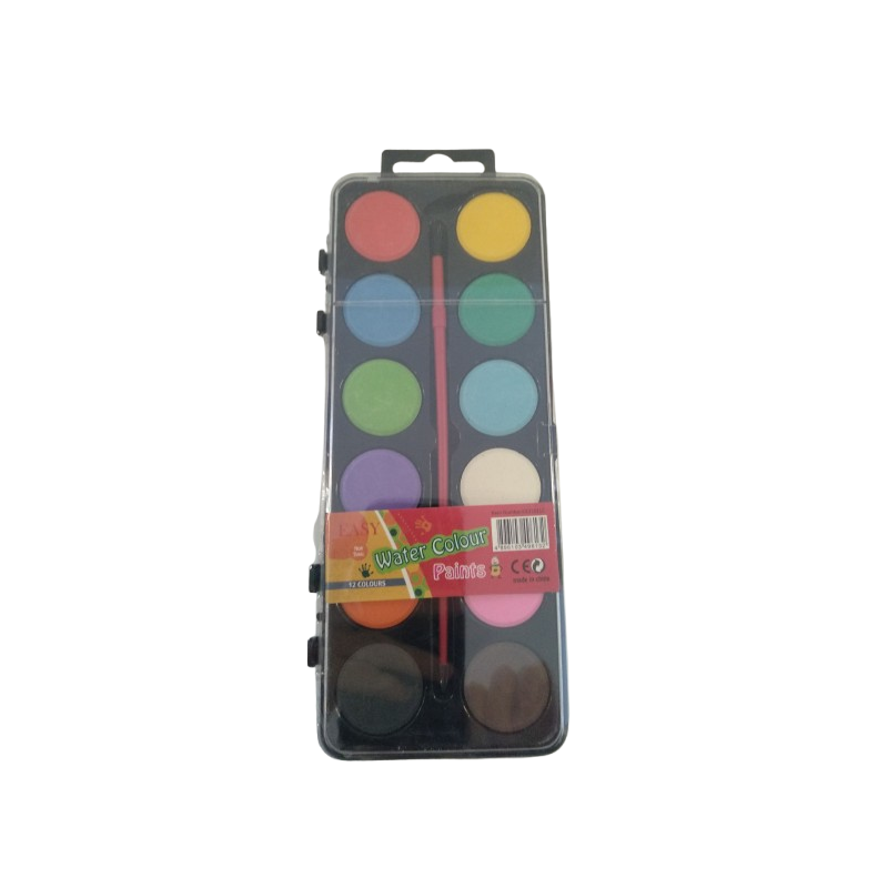 ¡Dale vida a tus dibujos con este pack de 12 acuarelas surtidas! Vienen en estuche plástico práctico y con un pincel de cerdas plásticas, perfectas para niños desde 3 años. Son lavables y no tóxicas, ideales para pintar y divertirse sin preocupaciones.