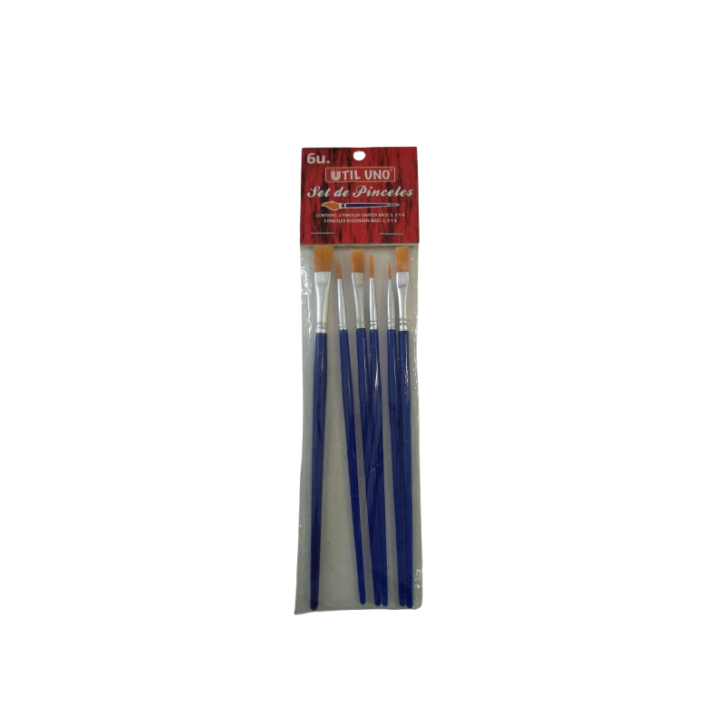 ¡Exprime tu creatividad con el set de pinceles Util Uno! Viene con 6 pinceles en tamaños 2, 3 y 4, combinando puntas chatas y redondas. Ideales para todo tipo de trazos y proyectos artísticos, ¡perfectos para dar rienda suelta a tu imaginación!