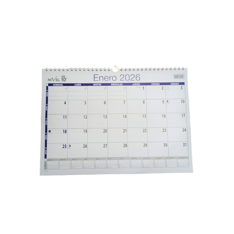 ¡Dale orden a tu año con el Planificador Nivel 10! Su formato mensual y tamaño amplio de 45x32cm te permite anotar todo cómodamente. Con espiral doble y listo para colgar, ¡ideal para tener tus metas y tareas del 2026 siempre a la vista!