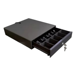 ¡Organizá tu caja con total seguridad y practicidad! Esta gaveta de dinero electrónica y manual es perfecta para tu punto de venta. Con cerradura, 4 espacios para billetes y 5 para monedas, y conexión RJ11 de 12V, te ofrece control y comodidad en cada transacción. ¡Compacta, resistente y lista para trabajar con vos!