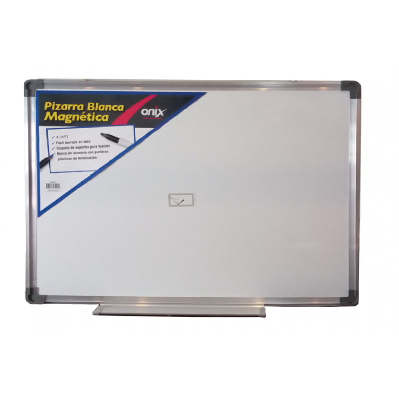 ¡La pizarra perfecta para organizar ideas en casa o la oficina! Esta Onix mide 45x60cm y tiene un marco de aluminio resistente y protecciones en las puntas. Es magnética y te permite borrar fácilmente en seco. Incluye una bandeja porta objetos y soportes para fijarla. ¡Podés planificar tu semana y dejar notas importantes con comodidad!