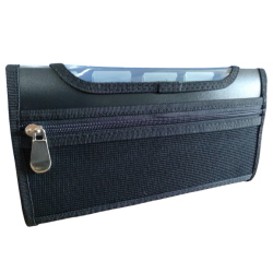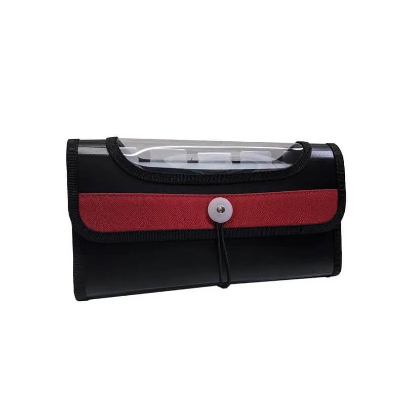 ¡Organización con estilo para tus finanzas! Este clasificador chequera FW combina PVC negro con detalles cosidos en rojo. Tiene un práctico cierre con elástico y una ventana ideal para identificación. Incluye 5 divisiones internas y un bolsillo trasero con cierre. Mide 26 x 14,5cm, ¡perfecto para guardar cheques y recibos de forma segura y ordenada!