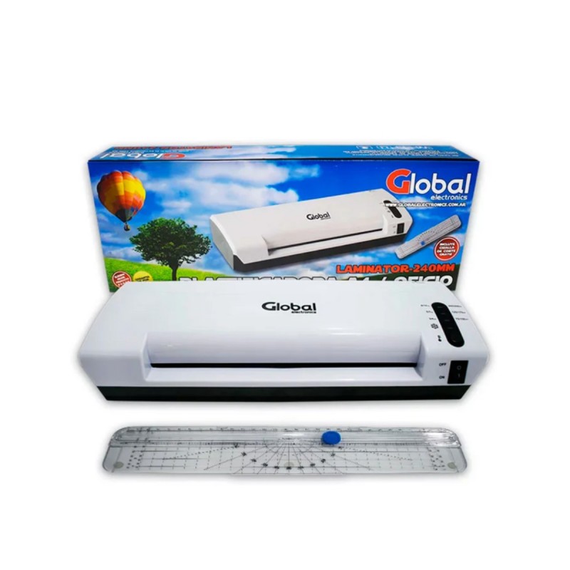 La máquina plastificadora Global A4 240Mm, modelo LAMINATOR-240MM, es una herramienta versátil y eficiente para proteger documentos de tamaño A4. Con un diseño en color blanco, esta laminadora y plastificadora ofrece la opción de laminado en frío y calor, logrando un espesor de 250 micrómetros para una protección duradera.