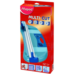 ¡Una cizalla súper versátil para todos tus trabajos A4! Este modelo Maped Multicut tiene una base de PVC de 44x22cm Corta hasta 35cm de largo y permite cortar hasta 5 hojas de 80 gramos a la vez. Incluye 4 cuchillas para corte recto, previo, troquelado y Tahiti, con espacio para repuestos. ¡Podés hacer cortes precisos y seguros gracias a su tope y cursor protector ergonómico!