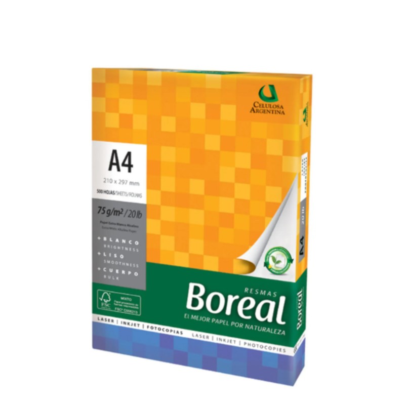 La Resma Boreal Extra Blanco A4 75 gramos es ideal para trabajos de impresión y copiado de alta calidad. Con un tamaño A4 y un gramaje de 75 g, ofrece un rendimiento excelente en impresoras y fotocopiadoras. Contiene 500 hojas por paquete, asegurando una gran cantidad de material para tus necesidades.
