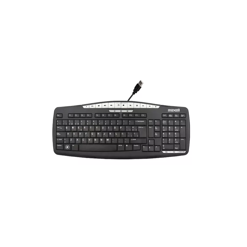 El Teclado Maxell KB100 Con Cable Multifunción tiene un diseño cómodo con teclas sensibles y pad numérico. Cuenta con soporte de inclinación, orificios de drenaje para derrames y un cable USB de 1.5 metros. Compatible con Mac y Windows, ofrece comodidad y eficiencia para el uso diario.