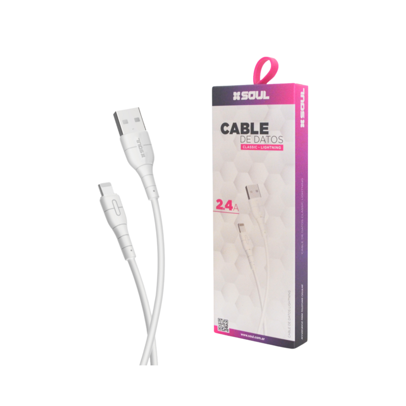 ¡Potencia y velocidad para tu iPhone! Este cable USB a Lightning de Soul te ofrece carga rápida de 2.4A y transferencia de datos en un diseño confiable de 1 metro. Ideal para usar en casa, la oficina o donde lo necesites.