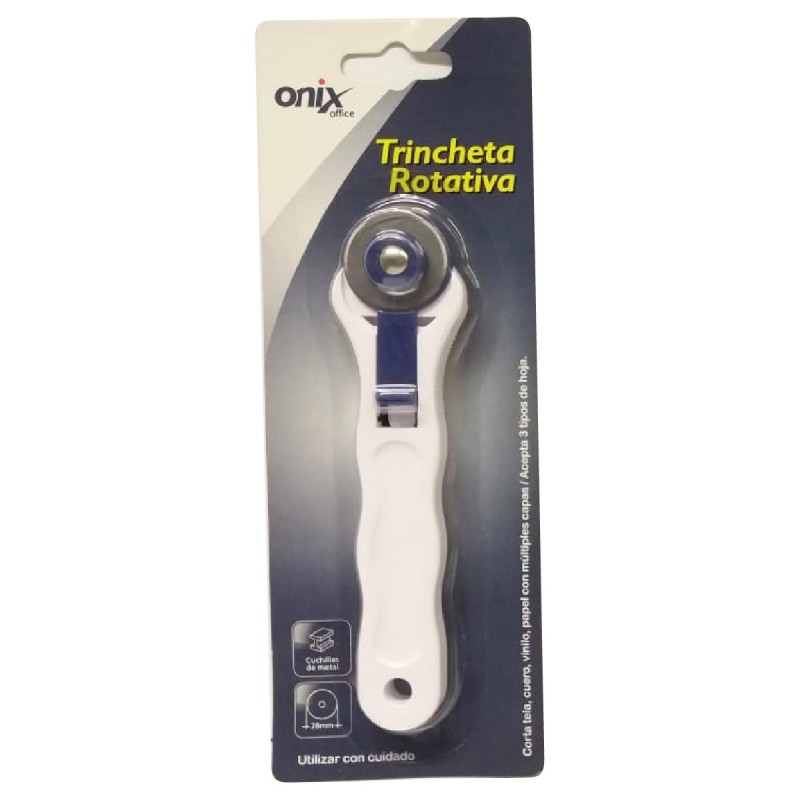 El Cutter Cortante Onix Rotativo Chico es una herramienta rotativa compacta y eficiente, ideal para cortes precisos en papeles y otros materiales. Con un mango de plástico ergonómico, proporciona un agarre cómodo para un control total en cada corte.