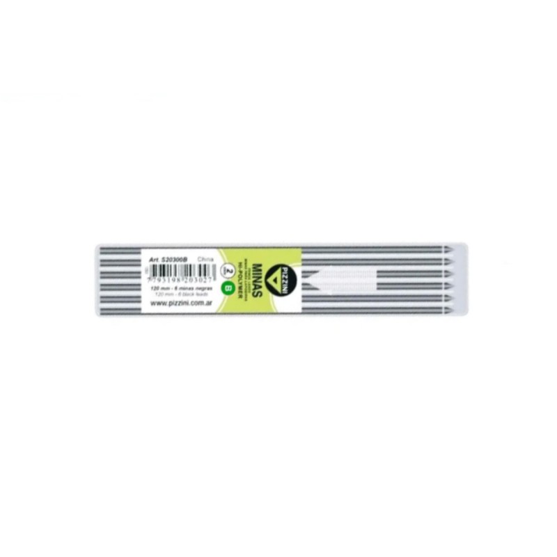 Las Minas Pizzini 2mm x6 B son ideales para quienes necesitan precisión en trabajos de dibujo y escritura. Con un espesor de 2 mm y una graduación B, estas minas ofrecen trazos suaves y oscuros, perfectos para sombreado y detalles finos. Vienen en un tubo con 6 minas de 120 mm de largo, lo que las hace duraderas y aptas para lápices de mayor grosor.