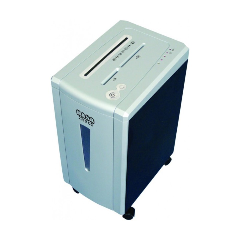 La Destructora de Documentos Dasa 2310 tritura hasta 12 hojas por vez en partículas, garantizando seguridad y eficiencia. Su potente motor de 250W destruye papeles, clips, broches, tarjetas, CD y DVD. Cuenta con un cesto de fácil vaciado, ruedas para traslado y un display LED con indicadores de seguridad. Equipada con sistema de protección térmica y función auto-reversa, evita atascos y daños, asegurando un rendimiento óptimo.