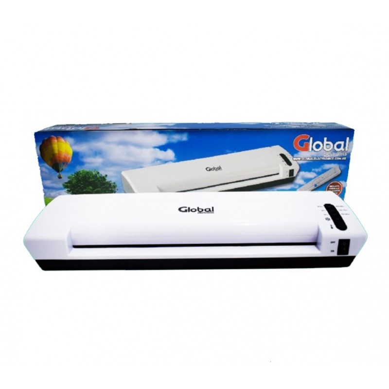 La máquina plastificadora Global A3, modelo LAMINATOR-330MM, es ideal para proteger y dar un acabado profesional a documentos y materiales gráficos. Funciona con un voltaje de 220V y ofrece la versatilidad de laminado en frío y calor, adaptándose a diferentes necesidades.