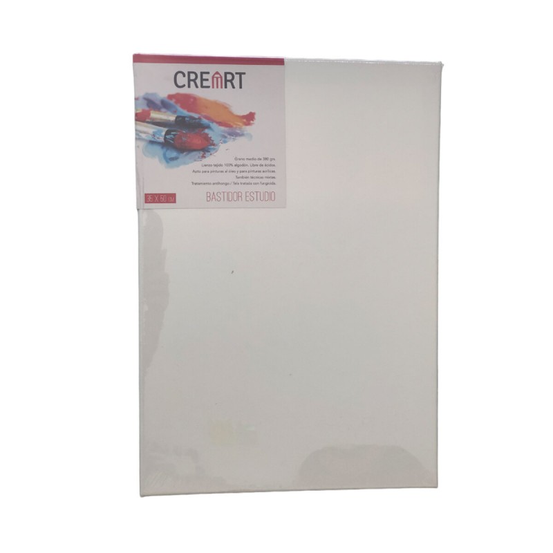 El Bastidor Creart 35x50 cm está fabricado con lienzo tejido 100% algodón, lo que garantiza una excelente calidad para tus obras. Es libre de ácidos, lo que lo hace ideal para pinturas al óleo, acrílicas y técnicas mixtas.