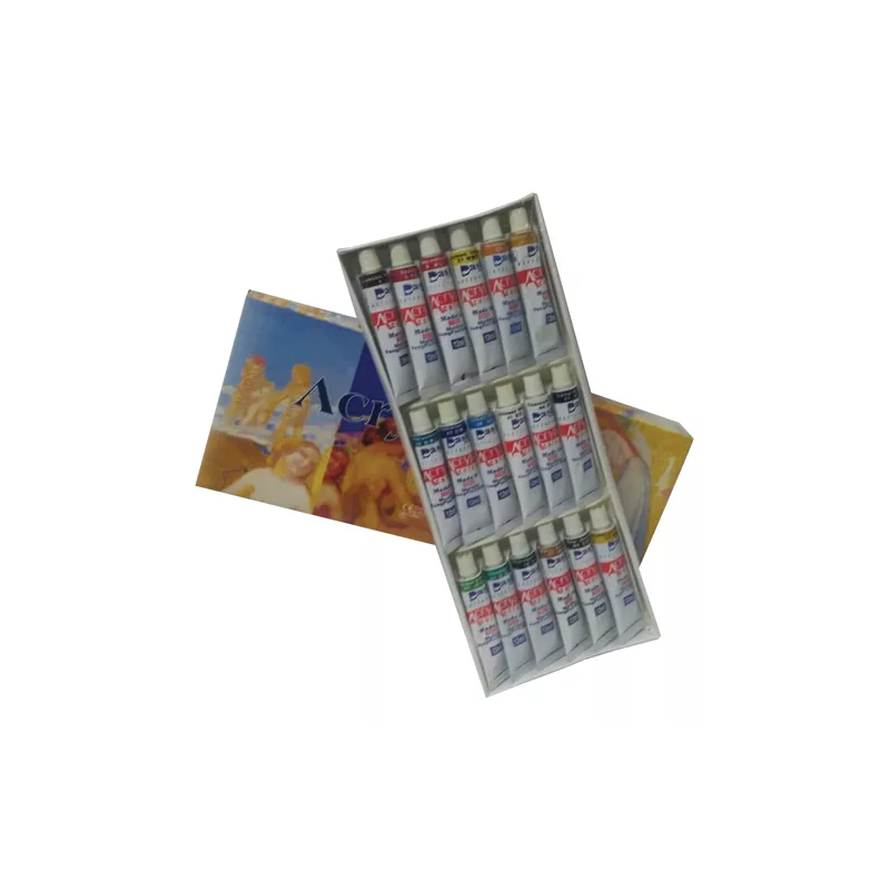Este set es ideal para proyectos creativos, ofreciendo 18 colores vibrantes con acabado mate. Cada tubo contiene 12 mililitros de pintura acrílica de alta calidad, perfecta para diversas superficies. Estos acrílicos son fáciles de aplicar y no son inflamables ni fluorescentes, lo que los hace seguros y adecuados para todo tipo de trabajos artísticos.