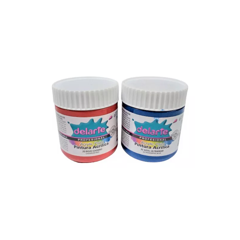 La Pintura Acrílica Delarte X260cc viene en una variedad de colores vibrantes como fucsia, violeta verde manzana, y más. Es apta para superficies como cartón, madera, metal, papel, tela y lienzo. No es inflamable ni fluorescente, ideal para proyectos grandes.